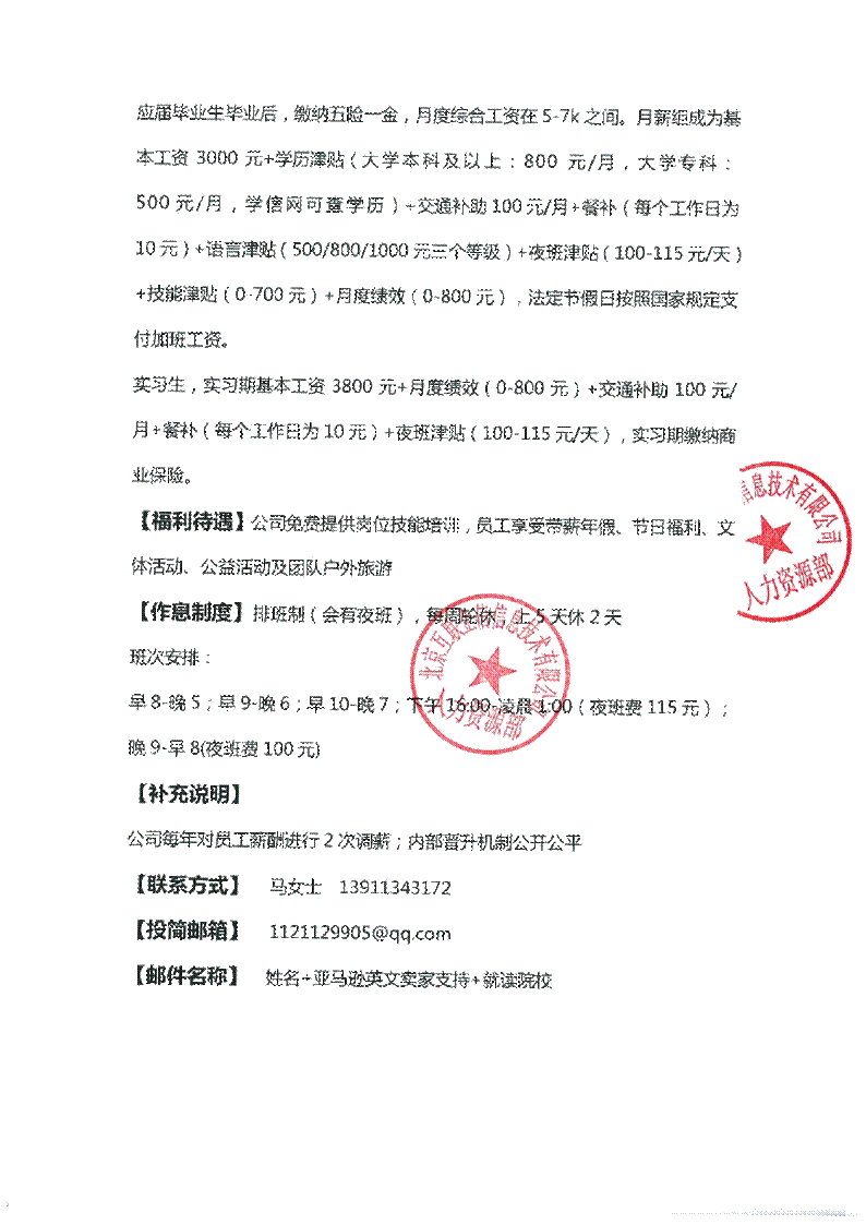 6、能接受晚班、夜班,吃苦耐劳,有团队精神。