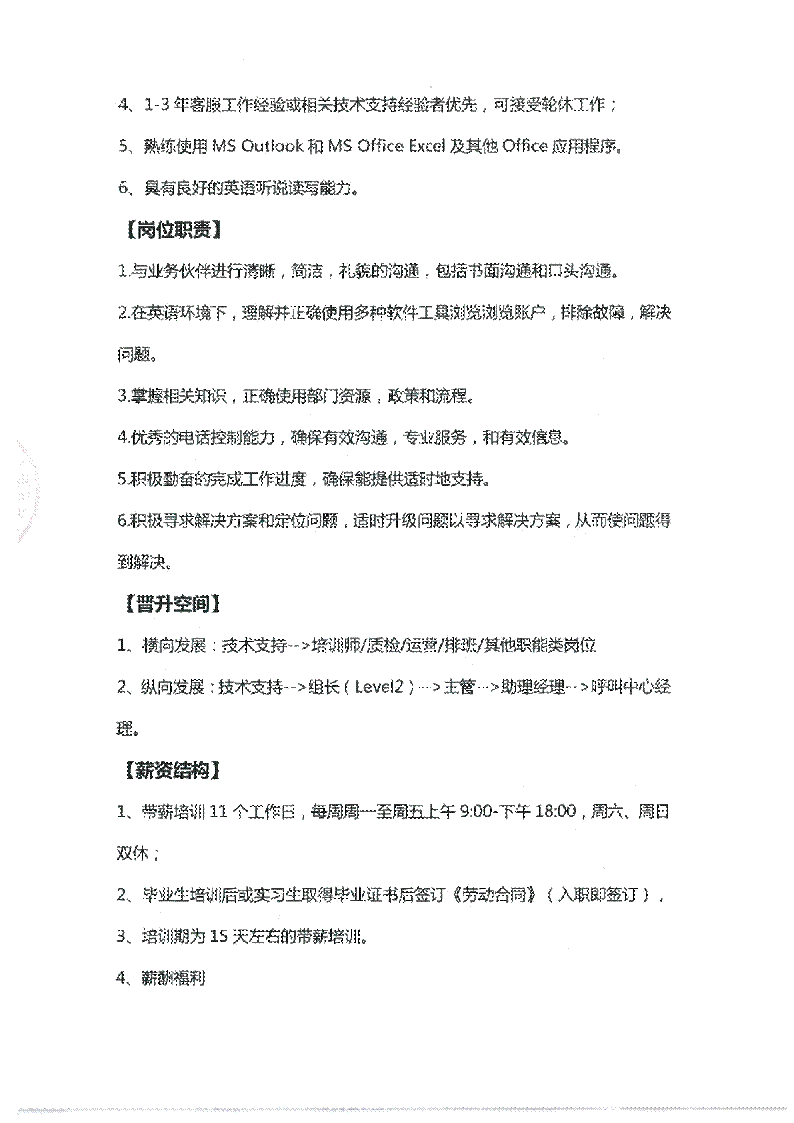 2、日语服务担当→QA→培训→人事