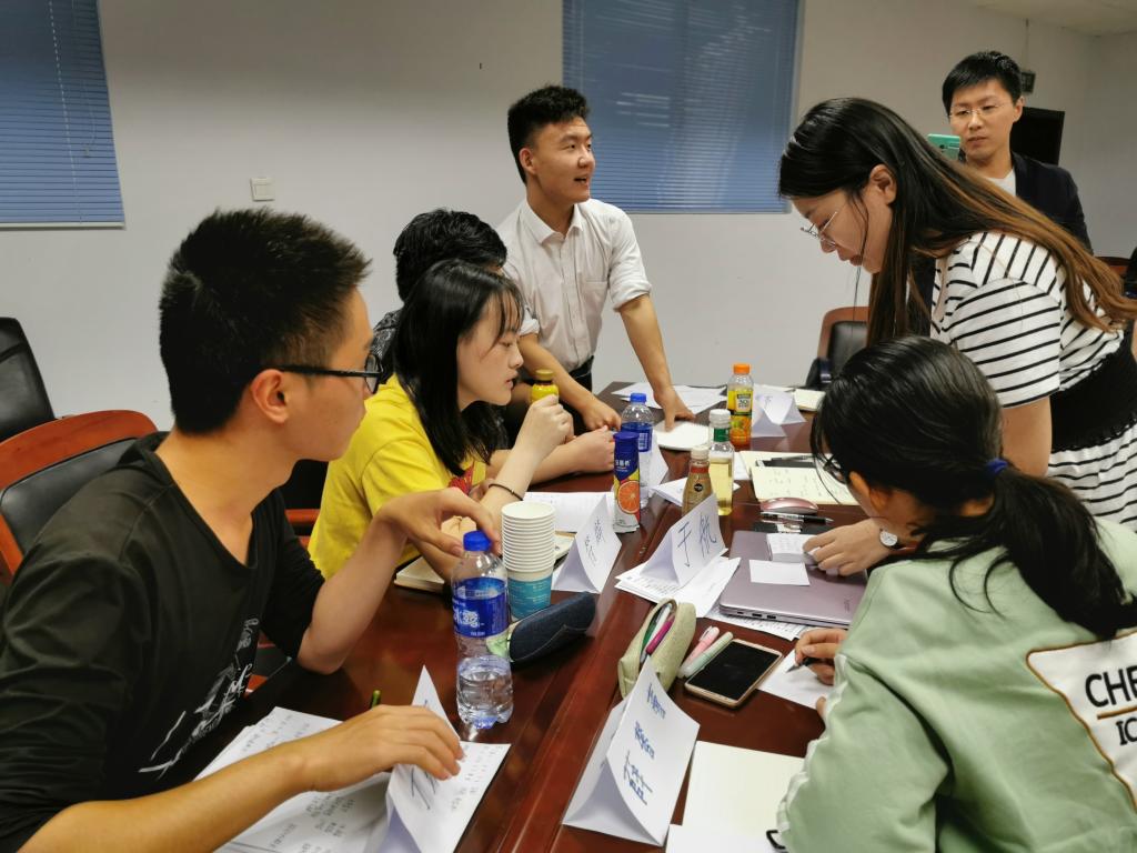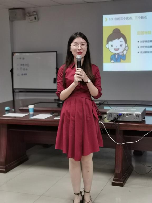 第五,无领导小组面试训练。首先四个小组分为两个房间,以小组形式各自进行两次无领导小组面试练习。同学们各自发挥自己的长处与优势,在面试练习中扮演着不同的角色:“主导者,协调者,计时员和总结者”。互相协作较完美的完成了两次面试练习,并且每次的练习每个同学都会有长足的进步,每次练习过后各自小组的老师都会要求大家说出自己的优点与缺点,让大家更加完整的认识自己,锻炼自己 。在此之后老师会对每个人做出针对性的总结以便他们更好的提高自己的面试水平。在所有的组完成练习后,老师讲解并教授了如何进行无领导小组面试,如面试官打分样表、无领导小组中的角色定位以及常见面试题目。