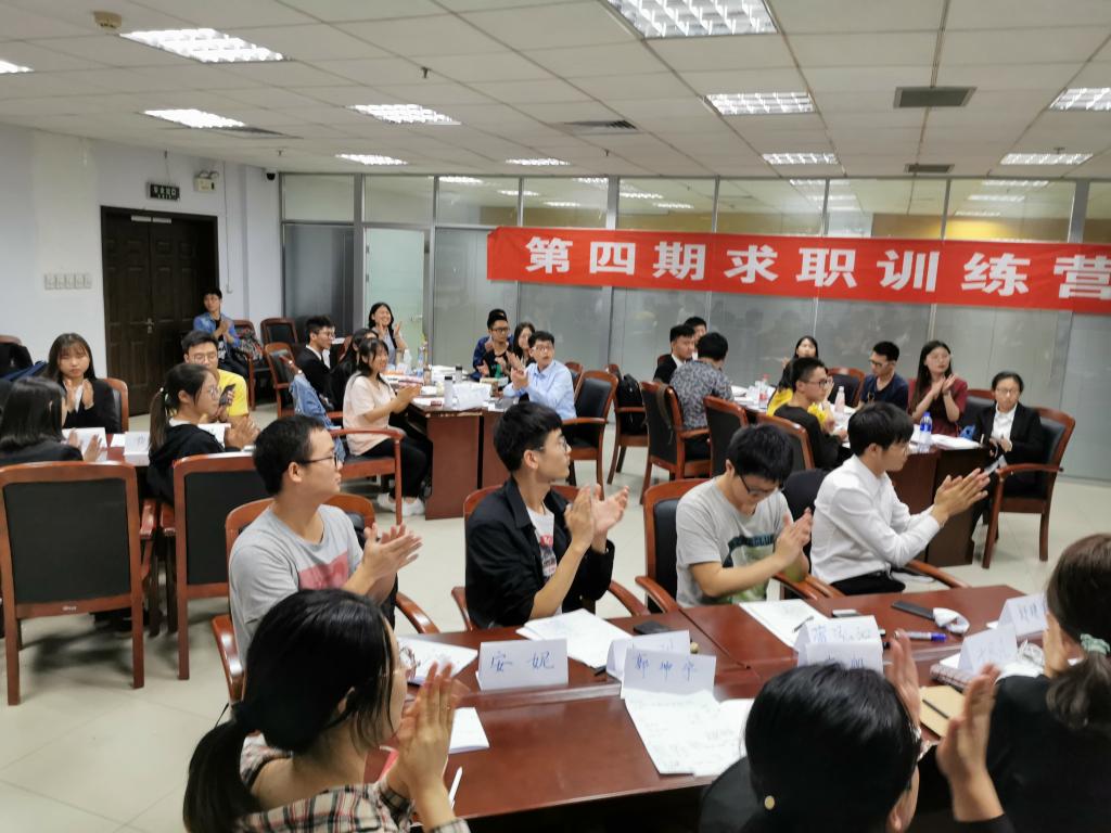 第四,面试训练。首先,通过简单的拍手游戏,导师让同学们充分地发现自己的潜力。随后,同学们分享了自己做面试官的经历,换位思考,站在面试官的角度来看待一场面试。接下来,导师系统地介绍了面试官的职责、需求和选拔标准。紧接是激动人心的个人面试环节,导师对每个同学进行一对一模拟面试,让同学们感受到了真实的面试情景,并针对每一个同学的不同情况做出客观评价,提出改进方法。然后,导师总结了个人面试通关秘籍,介绍了STAR行为描述面试法、结构化面试法等面试方法,并让同学们上台对常见面试问题重新组织答案,使其能学以致用。最后,导师总结出三大要点“牢记自己正在面试”、“牢记面试岗位”、“牢记所有的问答围绕岗位胜任力展开”。