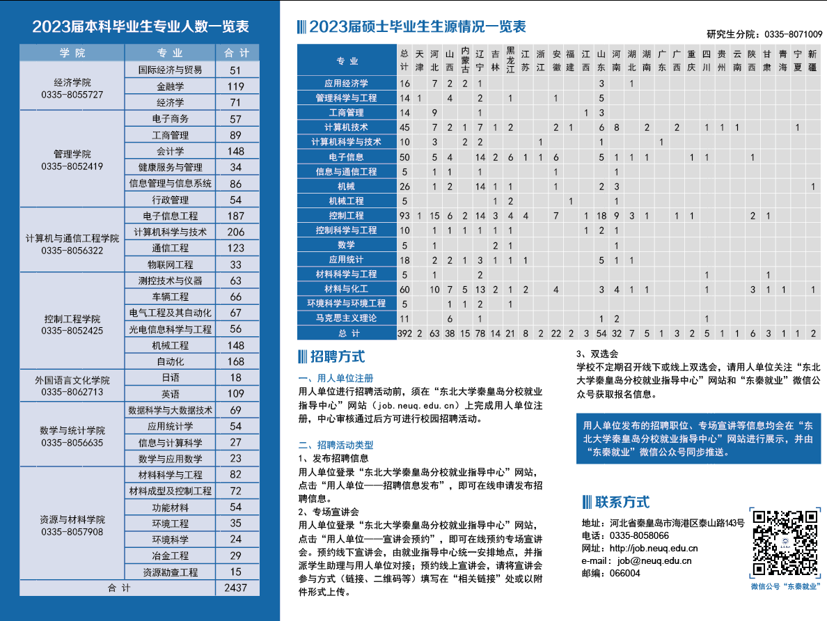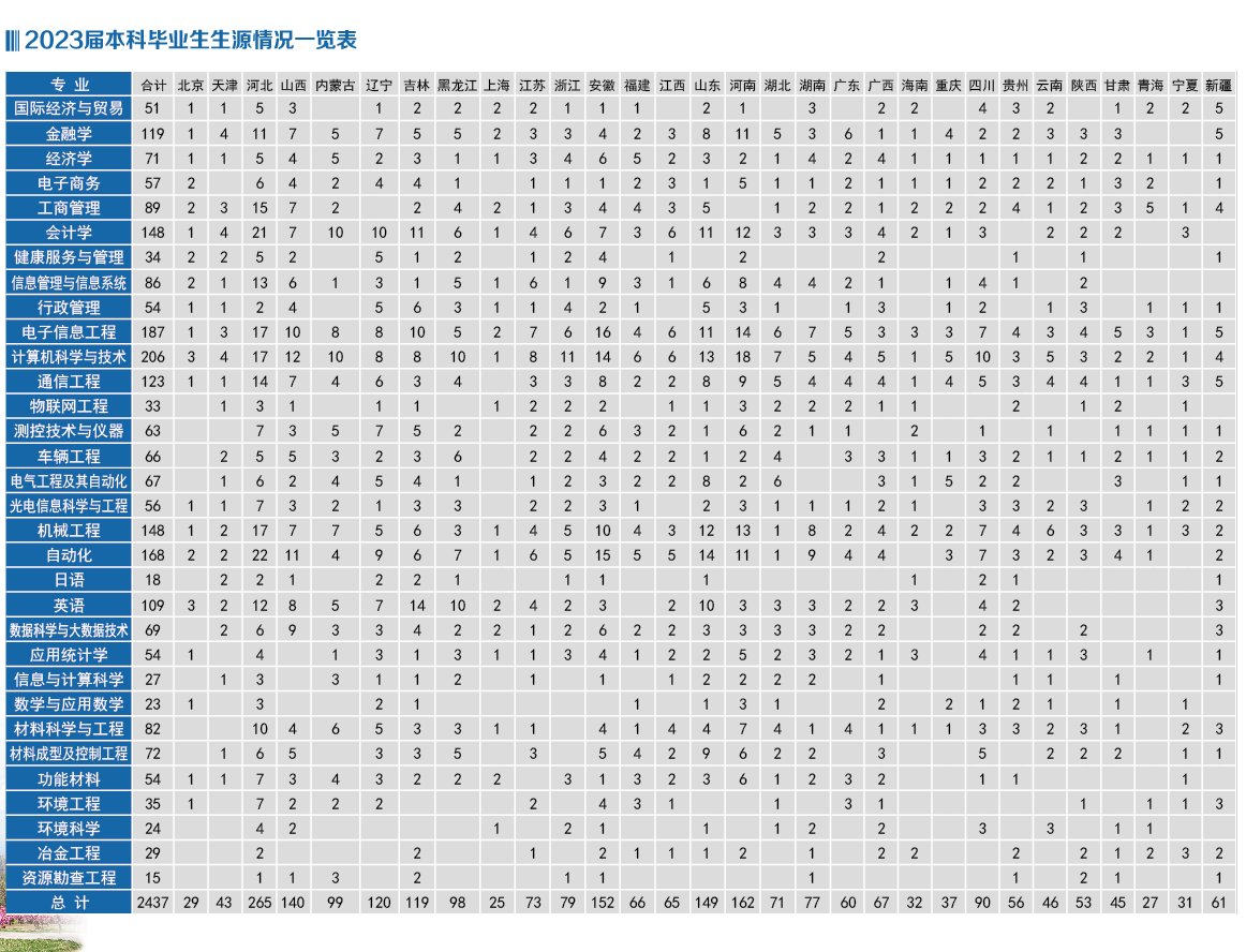 东北大学秦皇岛分校2023届毕业生生源信息